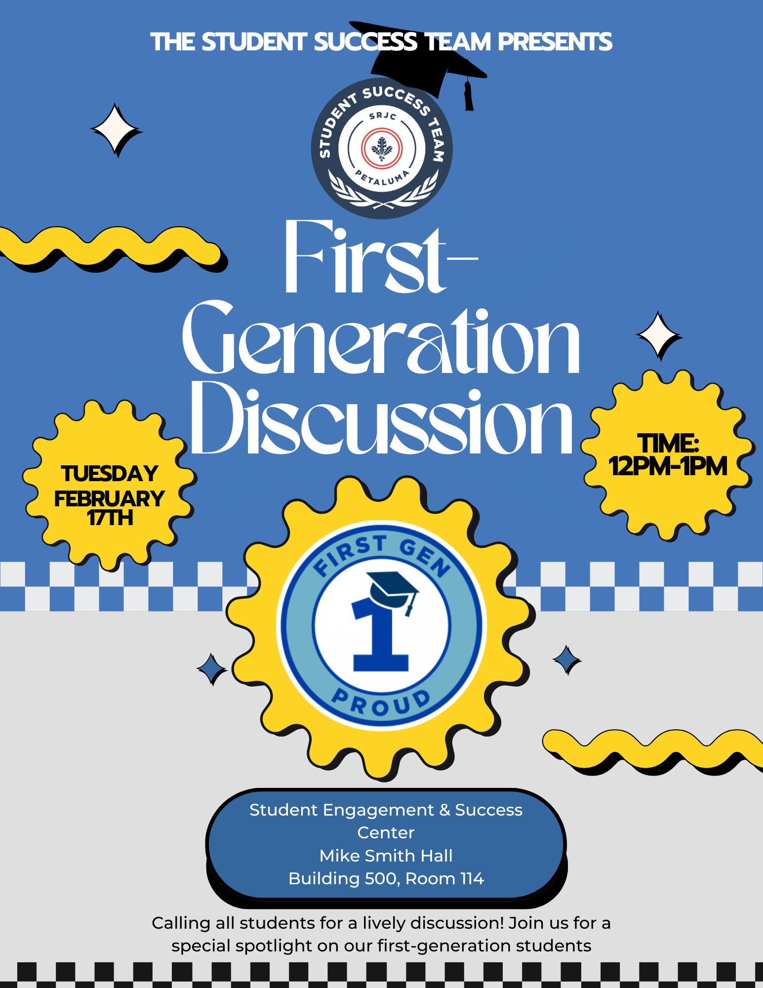 Stop by the Student Engagement & Success Center for a discussion on our first-generation students.