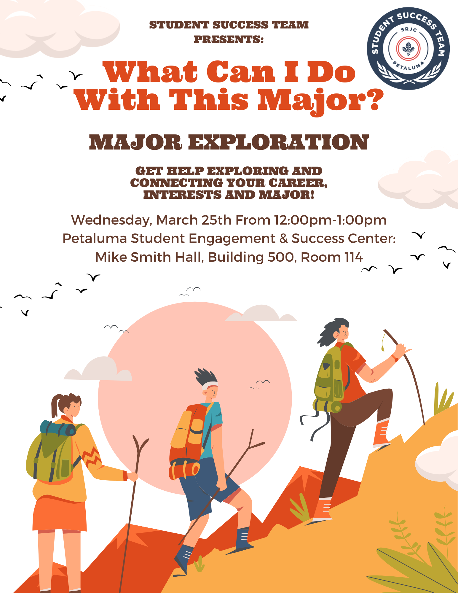 Do you struggle to imagine the possibilities your major opens up? Join the Student Success Team to explore career, internship, and volunteering opportunities that your major unlocks for you.